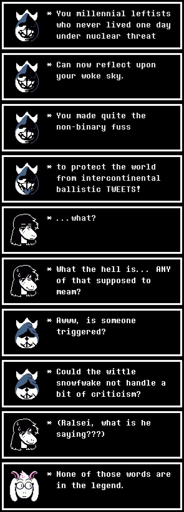 sleepy@reddthat.com to Memes@lemmy.ml · 3 years agoNone of those words are in the legendreddthat.comimagemessage-square1fedilinkarrow-up11arrow-down11
