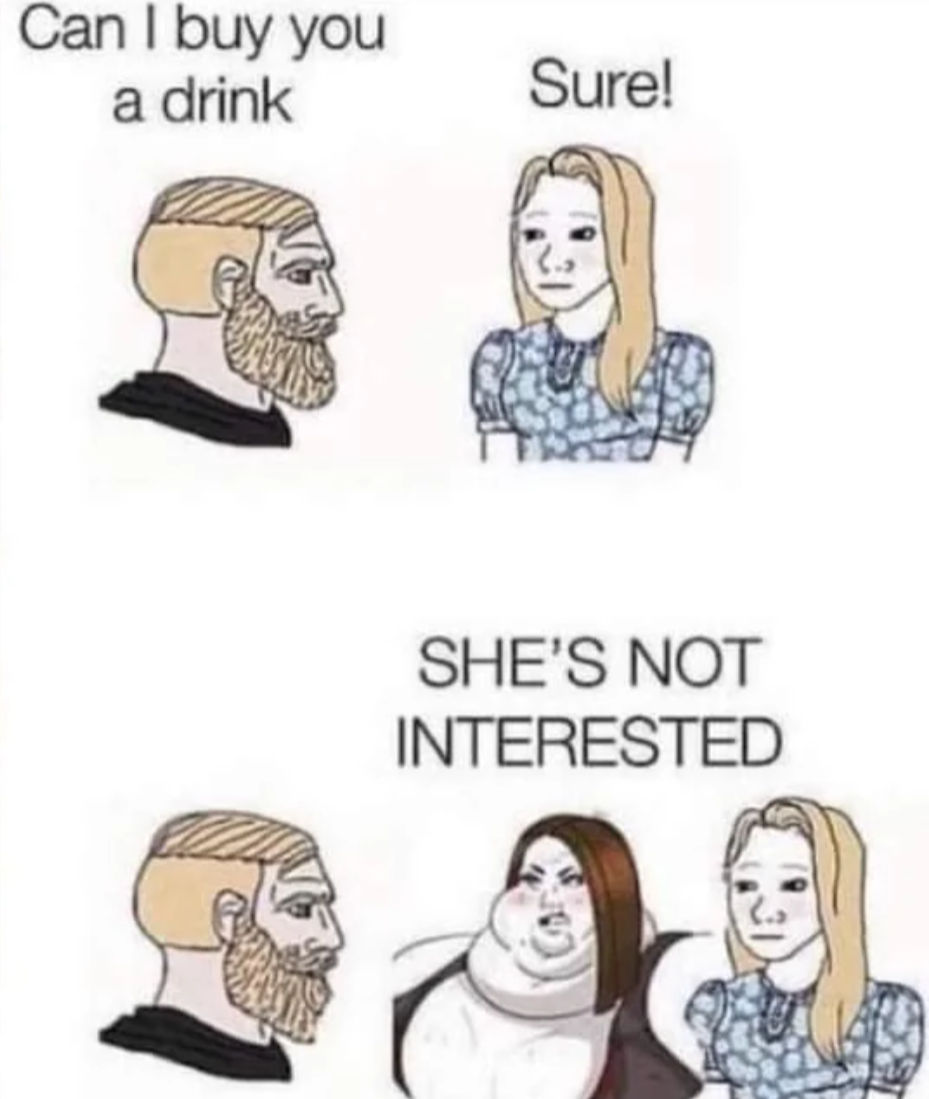 It’s not good guy lol. It’s the whale friend blocking “predators” from her good looking friend. Fat chick cock blocking her friend 🫡
