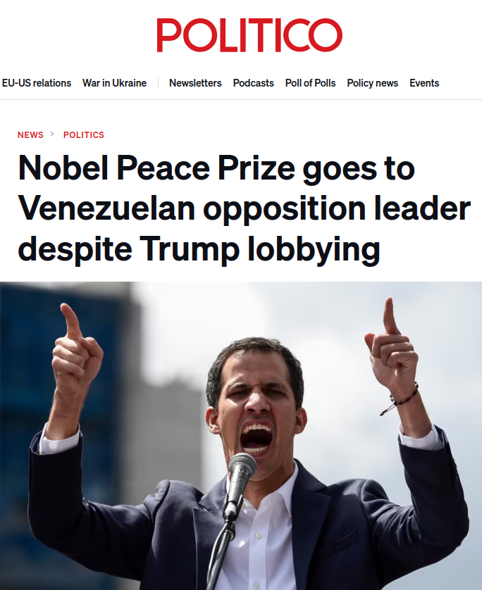 The US is planning a regime change in Venezuela. No doubt they would love to use the “we bring Democracy by installing a Nobel peace prize winner” angle.