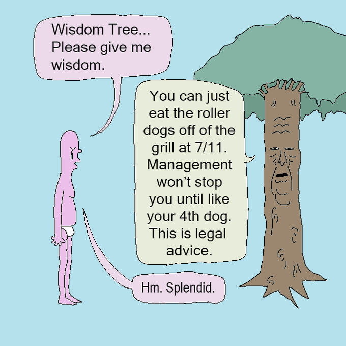 “God had no hand in the creation of these hotdogs. He is either ignorant of the horrors taking place within his kingdom, or impotent to stop them. Hold on, your receipt comes with buy-one-get-one free coupon.”